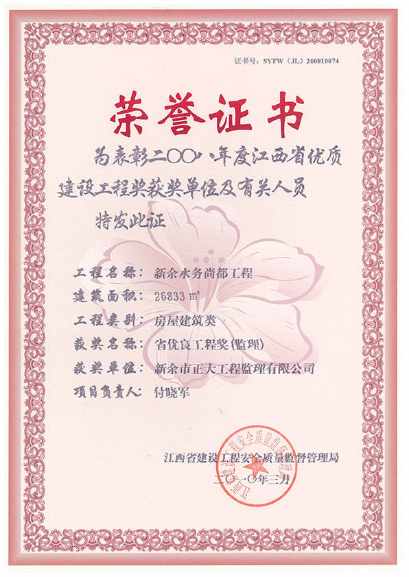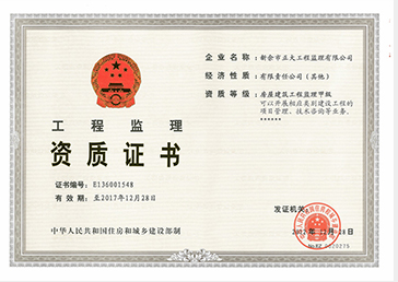 新余市正大工程監(jiān)理有限公司依托新余市建筑設(shè)計(jì)院,于1995年11月成立,是新余市開展監(jiān)理工作最早的監(jiān)理單位,本公司具有建設(shè)部核發(fā)的房屋建筑工程甲級監(jiān)理資質(zhì)、市政公用工程乙級監(jiān)理資質(zhì)、國家人防辦核發(fā)的人防工程監(jiān)理乙級資質(zhì)。我公司始終堅(jiān)持“客戶至上、質(zhì)量第一、信守合同”的經(jīng)營理念;追求“為社會創(chuàng)造價值、為業(yè)主創(chuàng)造效益、為自身謀求發(fā)展”的經(jīng)營宗旨;遵循“守法、誠信、公正、科學(xué)、優(yōu)質(zhì)、高效”的工作原則,以雄厚的技術(shù)力量、完善的管理制度、豐富的監(jiān)理經(jīng)驗(yàn)、良好的企業(yè)信譽(yù)迅速成為我市監(jiān)理行業(yè)的一支新銳力量!
